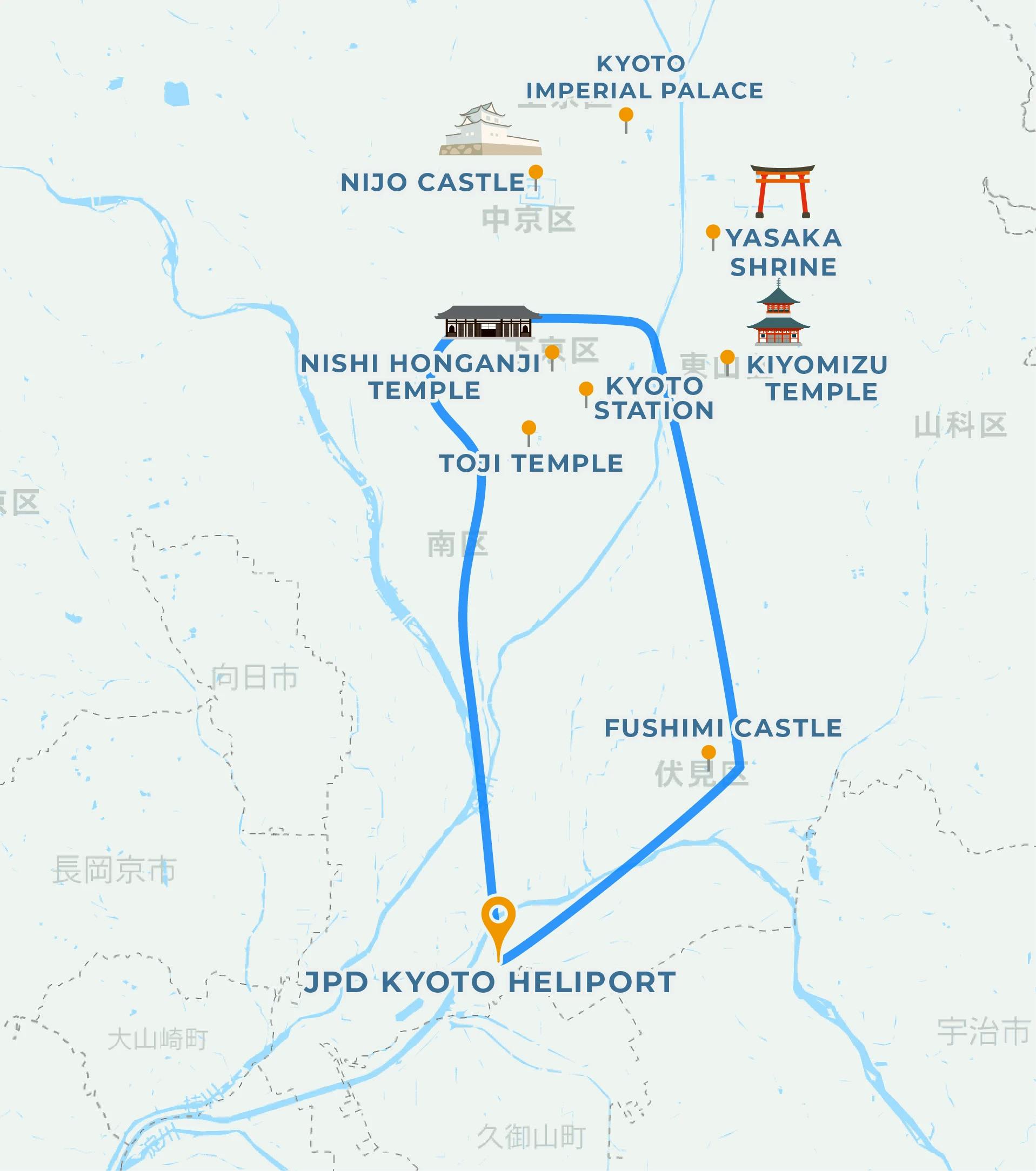 Enjoy a helicopter tour overlooking Kyoto Station, Kiyomizu-dera, Nijo Castle, and more. This is a great value plan that allows you to tour famous shrines and temples around Kyoto Station, even in a short 12-minute timeframe. It is also recommended for those who have not experienced Kyoto sightseeing or a helicopter ride.