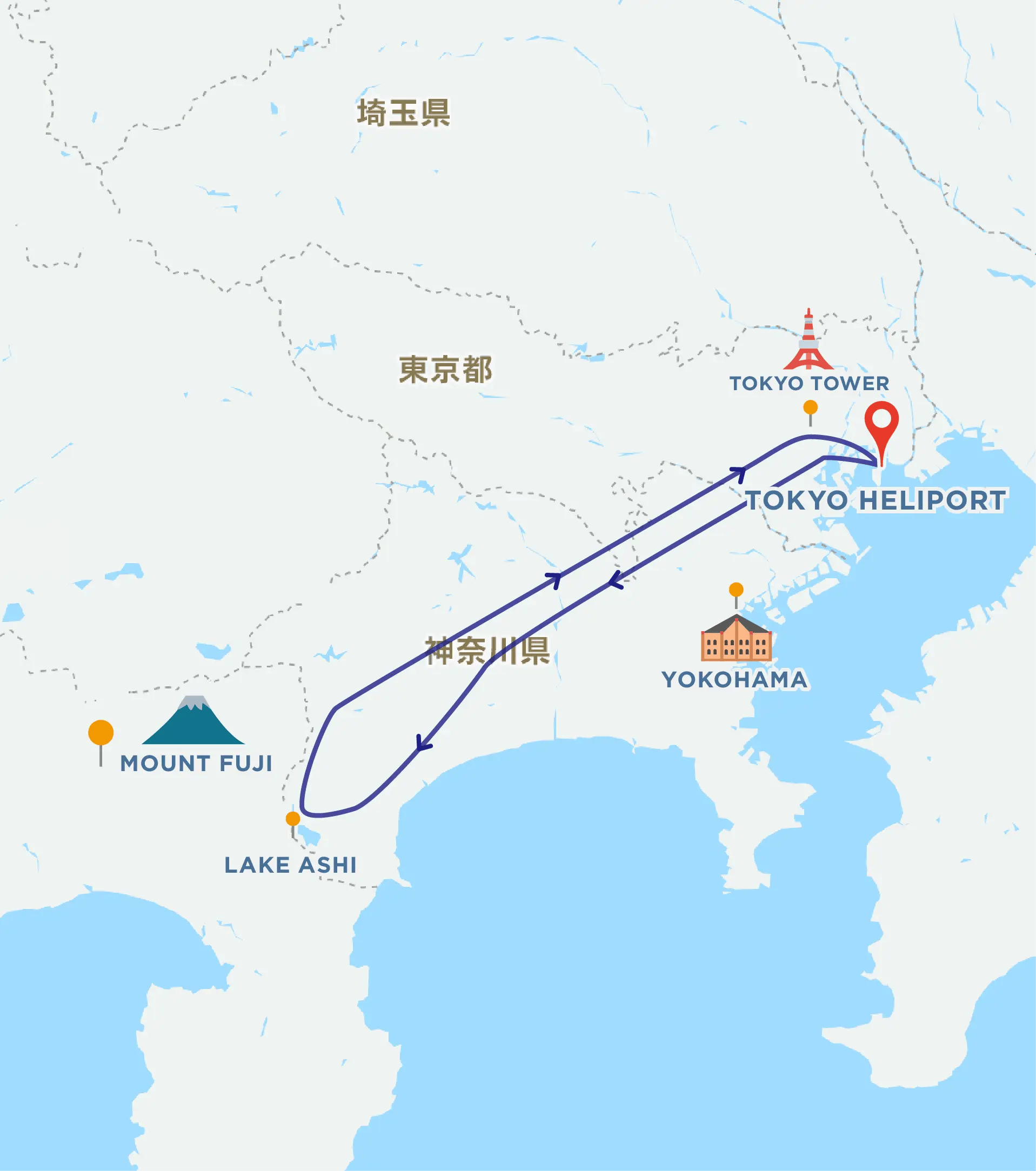 Experience the beauty of both urban and rural Japan with the Tokyo-Hakone, Mt. Fuji Experience Tour Package. The scenic helicopter tour takes passengers across key locations of West Tokyo, such as the Rainbow Bridge, Tokyo Bay, and Yokohama. The highlight of the tour will be the iconic view of Mt. Fuji and Lake Hakone. This luxurious tour departs off of Tokyo Heliport.