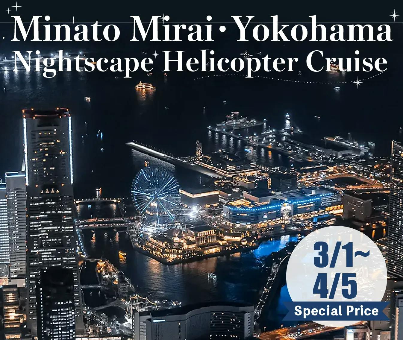 Reserve an exclusive luxury helicopter tour to enjoy the nightscapes of Tokyo and Yokohama. Charter services available.