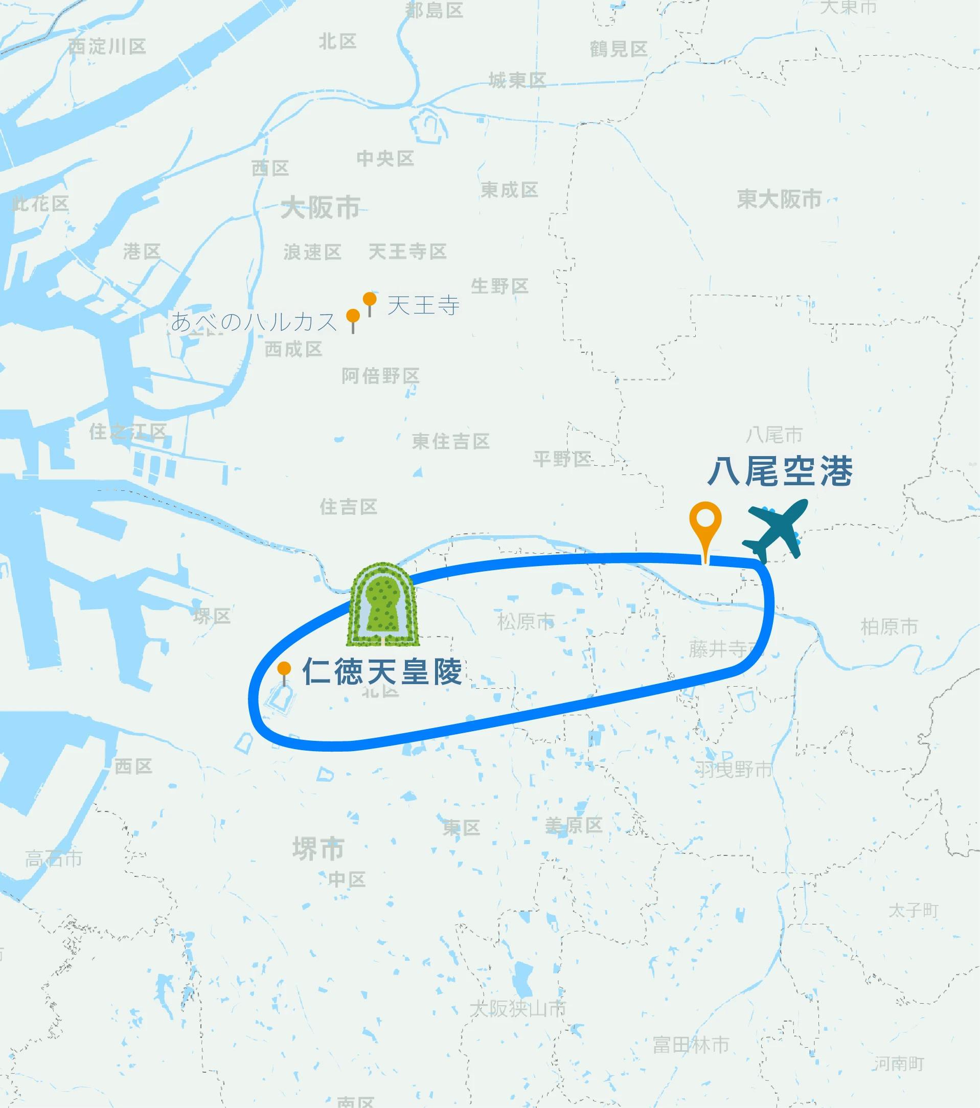 あべのハルカス, 天王寺, 八尾空港, 仁徳天皇陵
