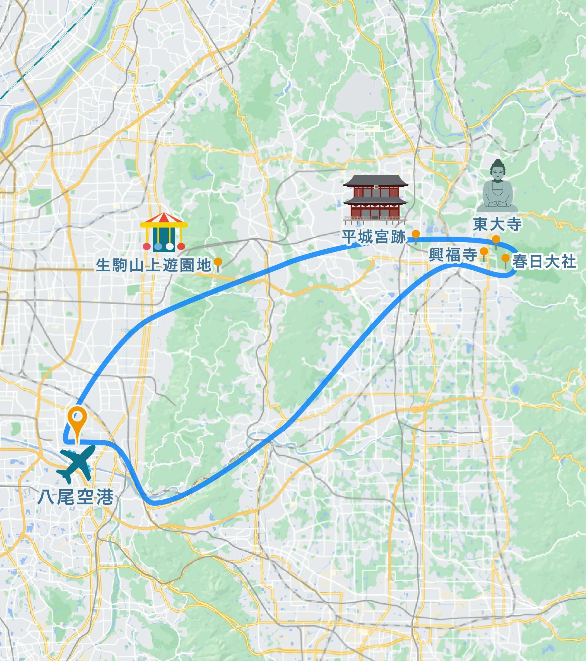 八尾空港を離陸後、ヘリコプターで奈良をぐるっと一周!迫力満点です。東大寺、興福寺、平城宮跡や奈良公園上空を周遊します。観光やサプライズにぴったり。奈良観光のプレゼントにも。