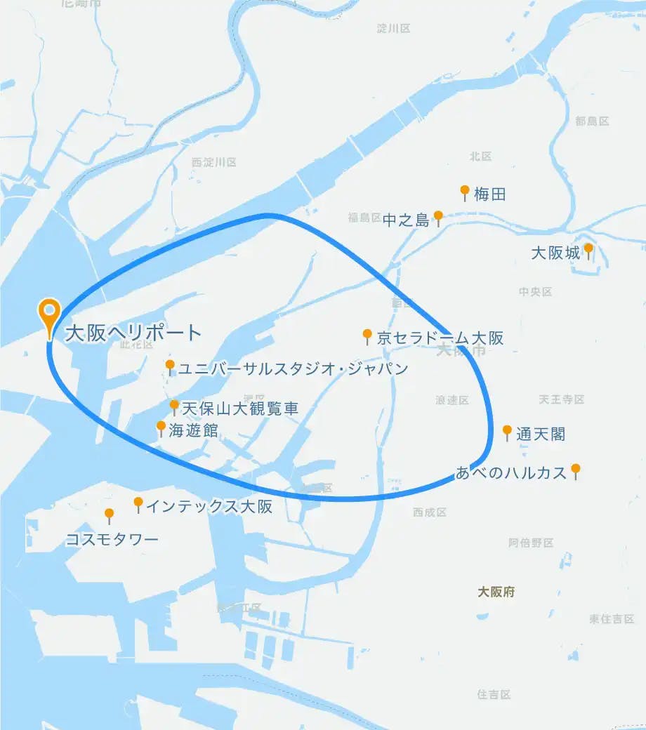 クリスマス限定プラン!USJ(ユニバーサルスタジオジャパン)や京セラドーム、大阪城など大阪市内の主要な観光シンボルを空から眺めてみませんか?観覧車から眺める景色よりもはるかに高いところから一望していただけます。大阪の観光地を一気に押さえておきたい皆様にオススメのプランです。