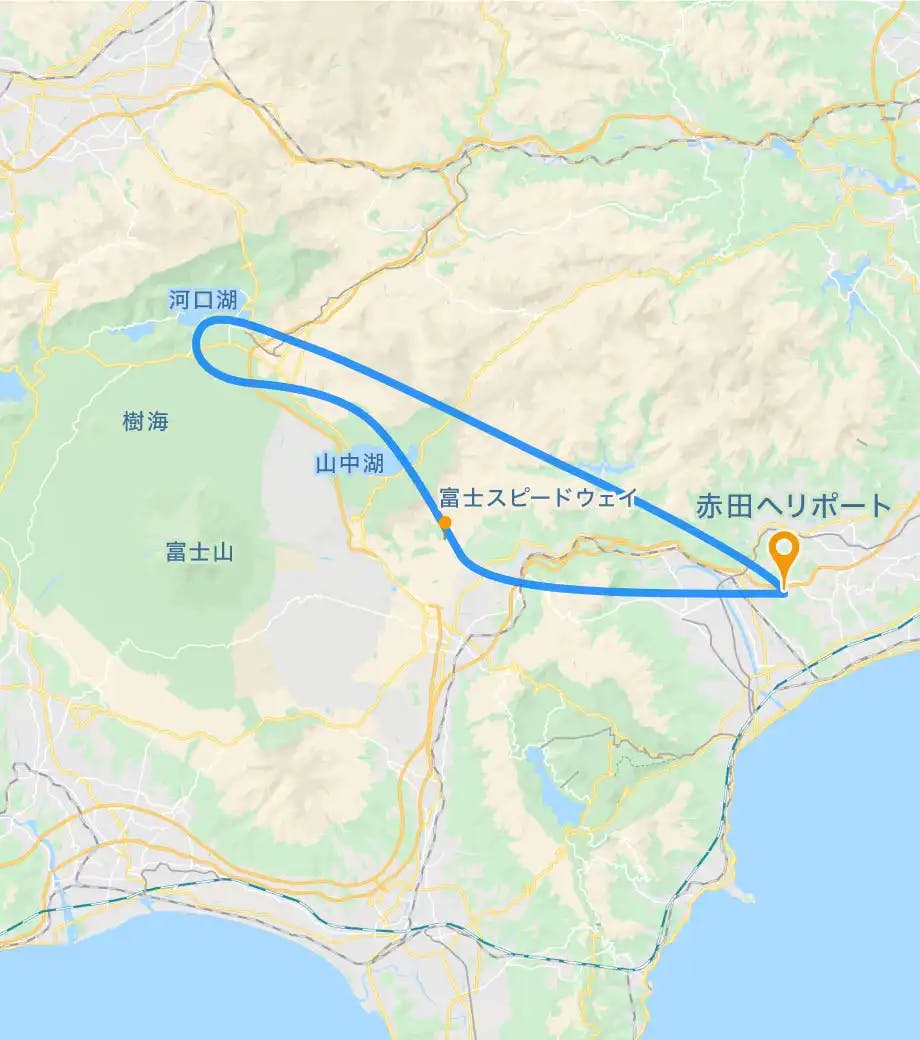 富士山麓・河口湖までヘリコプターで往復する遊覧プランです。東京都内からのフライトよりも安価に、そして、富士山により近づくことのできるヘリクルージングです。富士山、青木ヶ原、河口湖などの圧巻の景色を上空からご堪能ください。