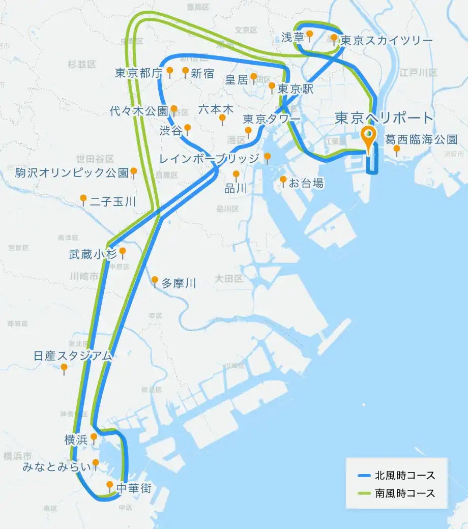 東京ヘリポートを日没直前に離陸!東京都市部と横浜の2都市を、リッチに55分でヘリコプターナイトクルージング♩東京スカイツリー、東京タワー、レインボーブリッジ、、渋谷、新宿上空を遊覧したあと、横浜方面へ移動。みなとみらいや赤レンガ倉庫など。美しくライトアップされた夜の東京。横浜をご堪能いただけます。