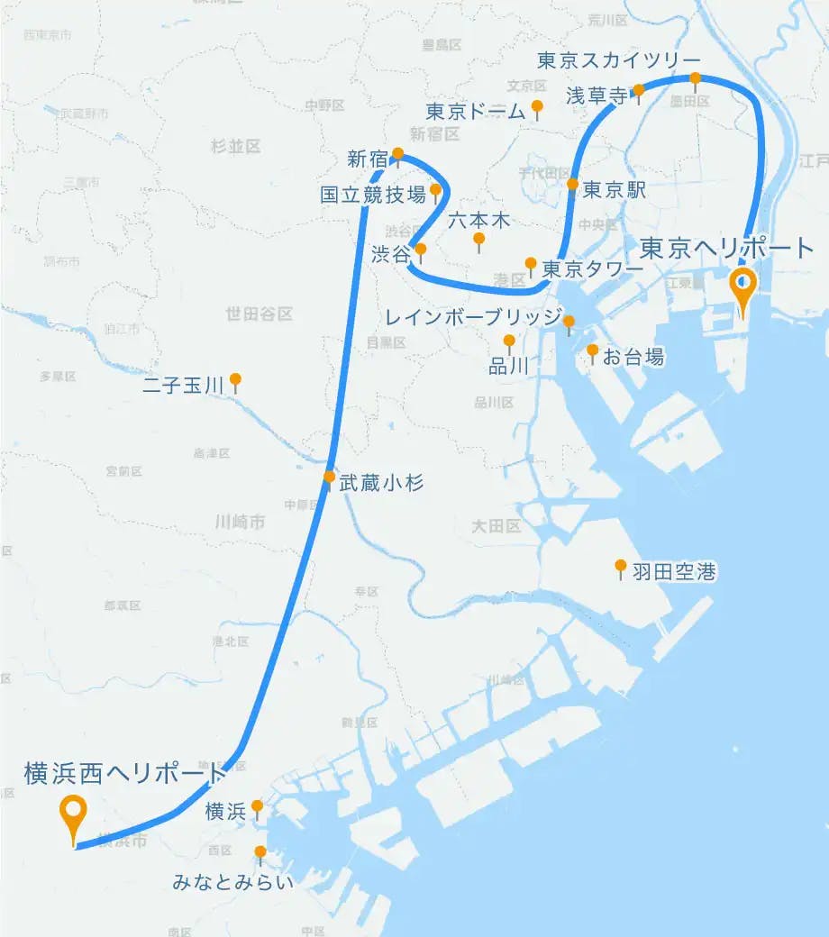 クリスマスの東京都市部と横浜の2都市をヘリコプターデート、30分間のヘリコプタークルージング♩横浜西ヘリポートを出発後都内へ向けてフライト、渋谷・新宿上空を遊覧します。クリスマスデートにぴったりのヘリコプタークルージングをお楽しみください。