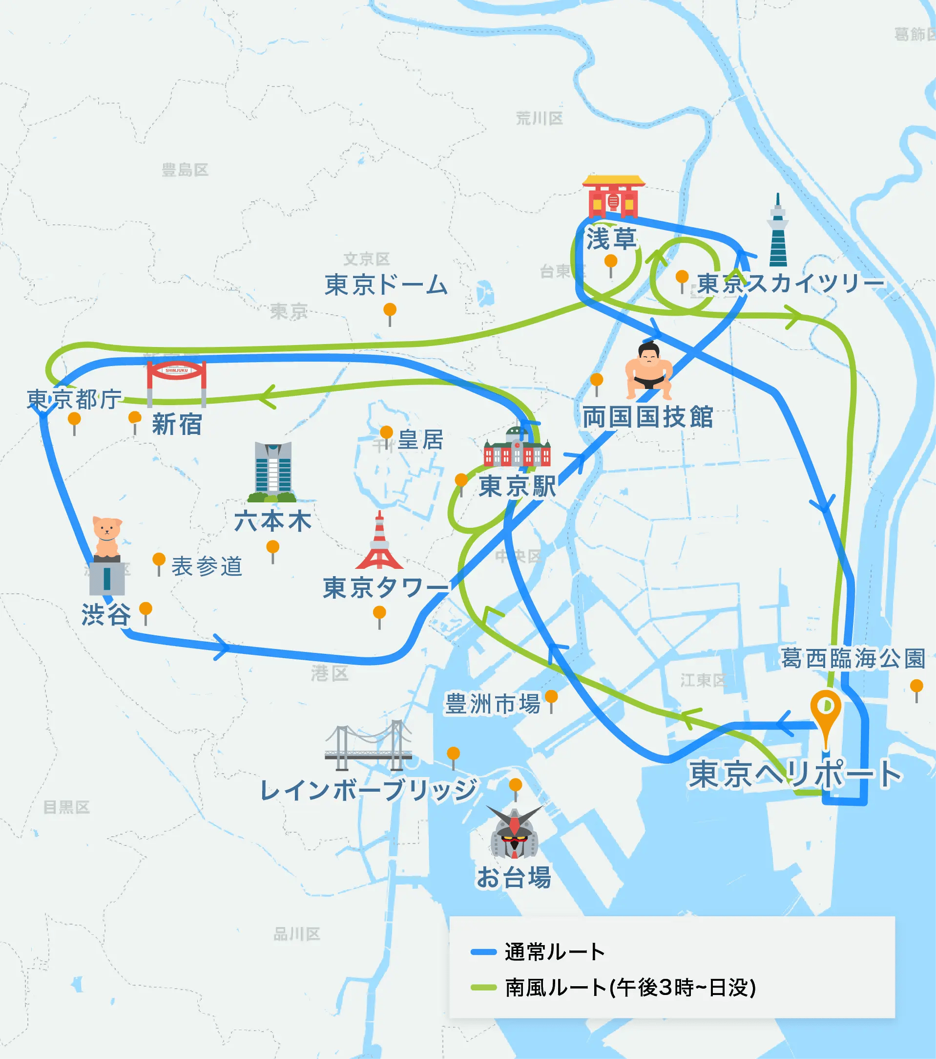 レインボーブリッジ, 勝鬨橋, 東京駅, 秋葉原, 東京ドーム, 皇居, 新宿, 明治神宮(レイライン), 渋谷, 羽田空港, 六本木ヒルズ, 東京タワー, 両国国技館, スカイツリー, 浅草寺