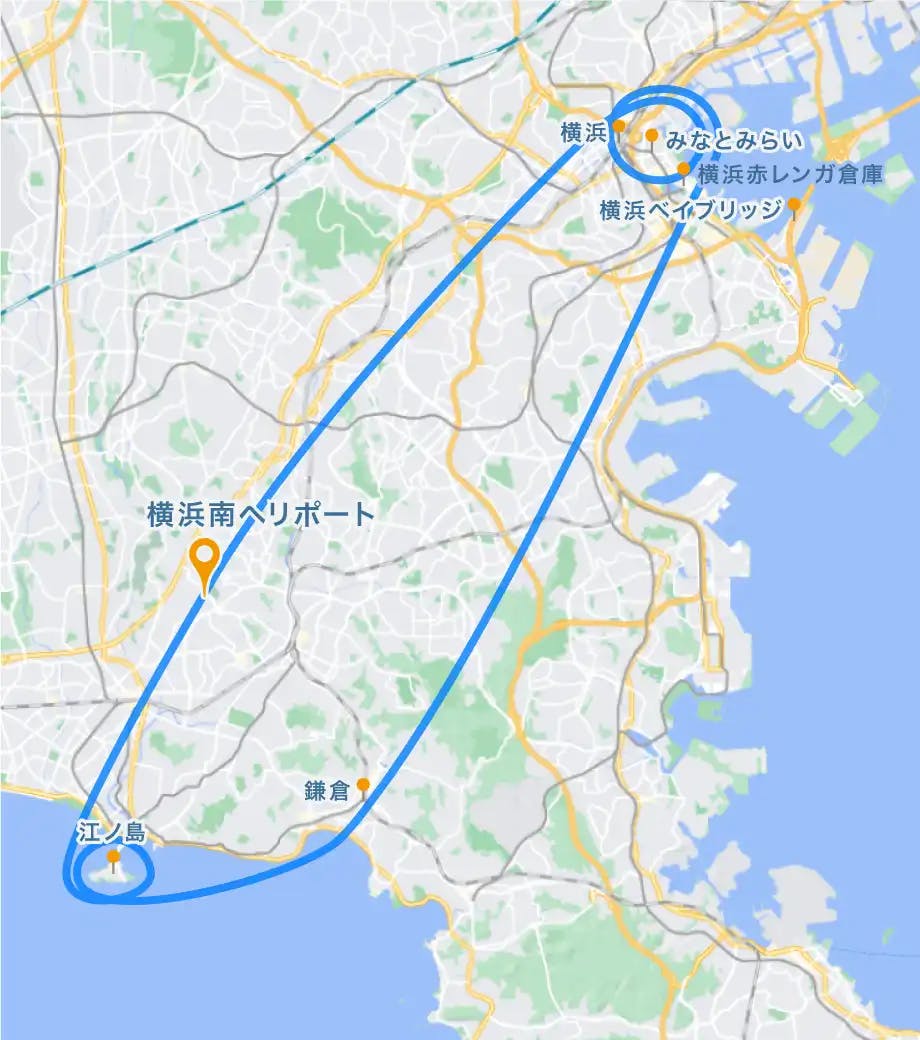 横浜・鎌倉・江ノ島をヘリコプターでクルージング!鎌倉の歴史的な街並みと、江ノ島・湘南をはじめとするビーチエリア、横浜の都市エリアをヘリ遊覧します。エリアによって全く違う景色が広がり、横浜・鎌倉・江ノ島のさまざまな顔を堪能できます。