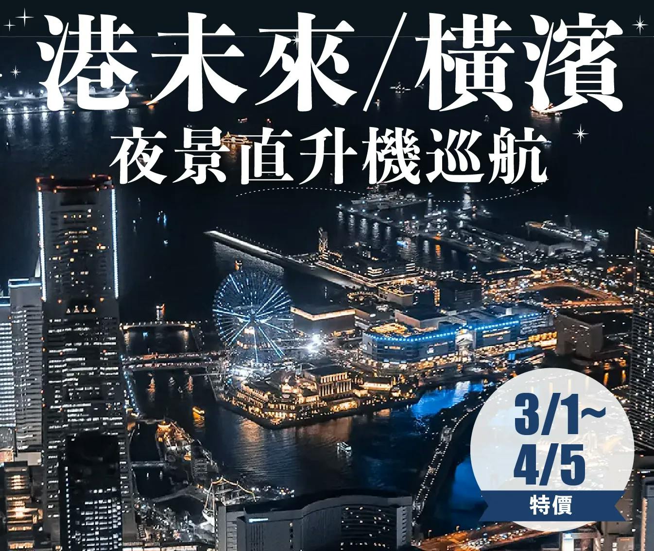 預約專屬豪華直升機遊覽,欣賞東京與橫濱的夜景。提供包機服務。